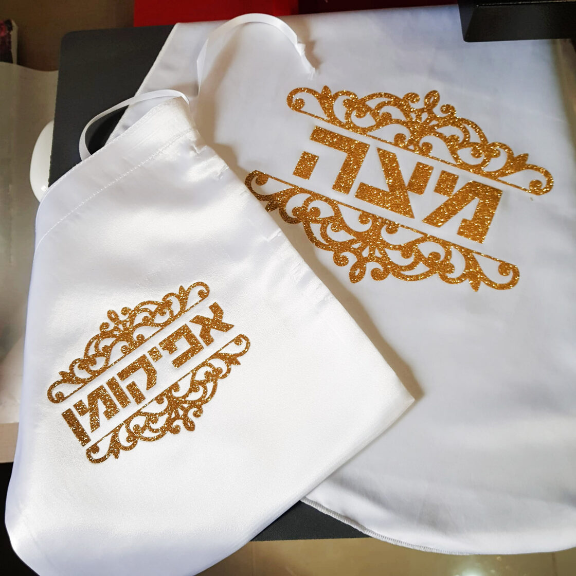 כל סט כולל כיסוי מצות, שקית לאפיקומן, מחזיק מפיות ומחזיק מצות.